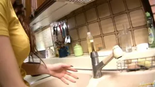 Description: Seria Moroboshi is in the kitchen with her guy. He is cooking and she has a dish she accidentally spills on the floor. He makes her clean it up after he feels her big tits. She cleans up the mess and he resumes cooking. Once the kitchen is taken care of he decides to have some fun with Seria Moroboshi and her big tits. He gets in plenty of fondling and licking before he has her pussy showing and they are enjoying each other in their own dessert!